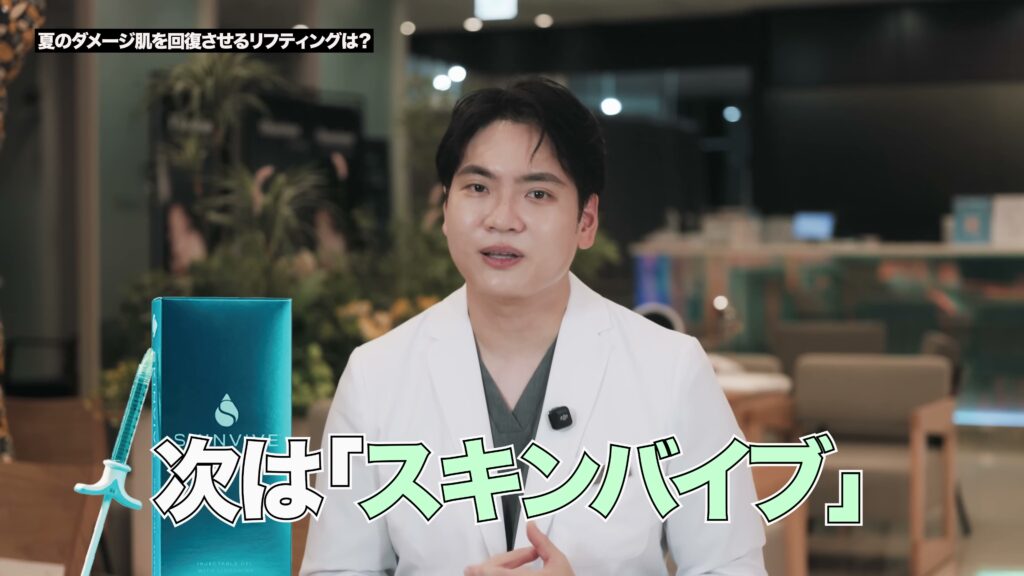スキンバイブは肌質の改善、細かいシワの緩和、肌のトーンアップなどさまざまな効果が期待でき、夏季全般の肌状態の回復に非常に効果的です。特に夏に受けたダメージで乾燥した肌に水分を供給し、ハリを回復させるのに役立つ可能性があります。