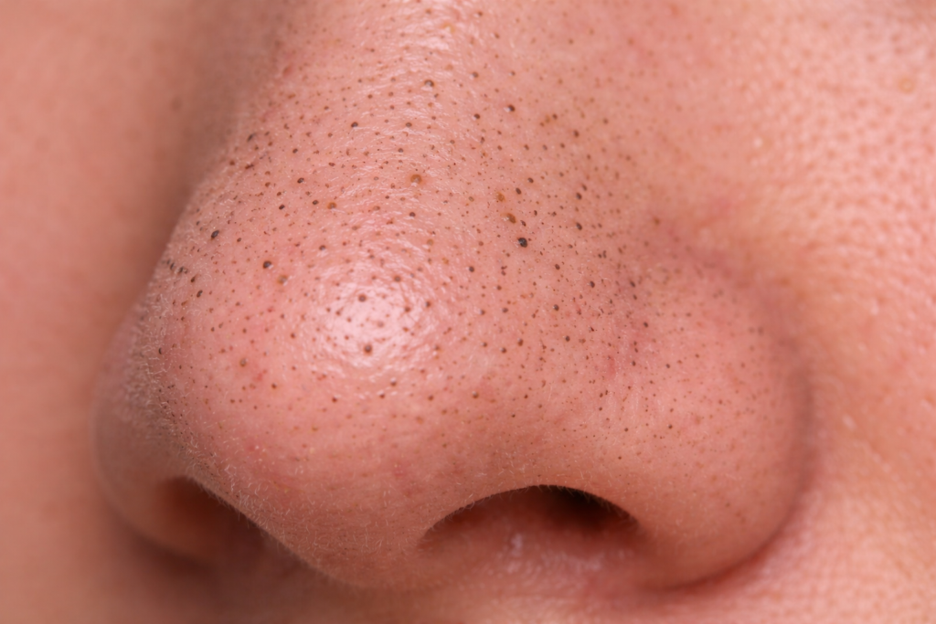 特に鼻周りでは、ブラックヘッドやホワイトヘッドとして毛穴がより目立つこともあります。