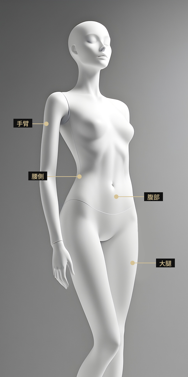 針對僅靠飲食控制與運動難以縮小圍度的部位,如手臂、大腿、腰側等特定區域,具有良好的改善效果。