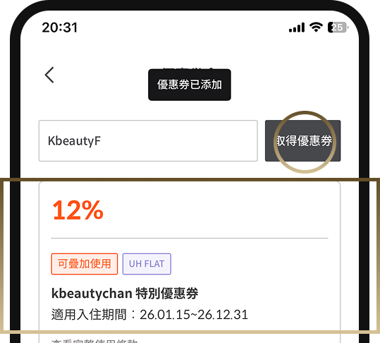 UH FLAT 各飯店的優惠碼。